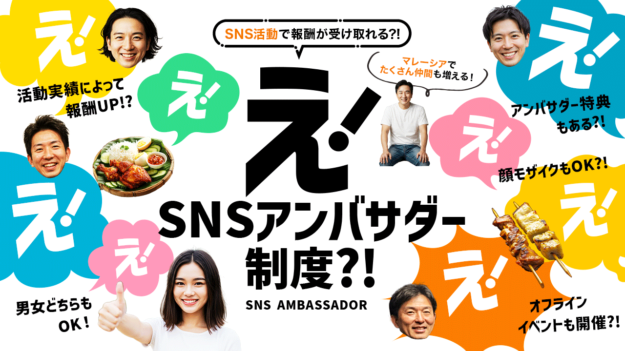 マレーシア・クアラルンプールを拠点に日本人向けにSNS活動(主にYouTube、Instagram、など)されているインフルエンサー向けに『SNSアンバサダー制度』のご紹介させていただきます。
