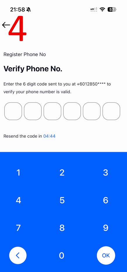 ※マレーシア番号をお持ちの方は電話番号の国番号は「+60」日本の番号のみをお持ちの方は「+81」を選択してください。(最初の0は抜いた番号を入力してください。例:050-1234-5678という電話番号をお持ちの方は「5012345678」と入力してください)