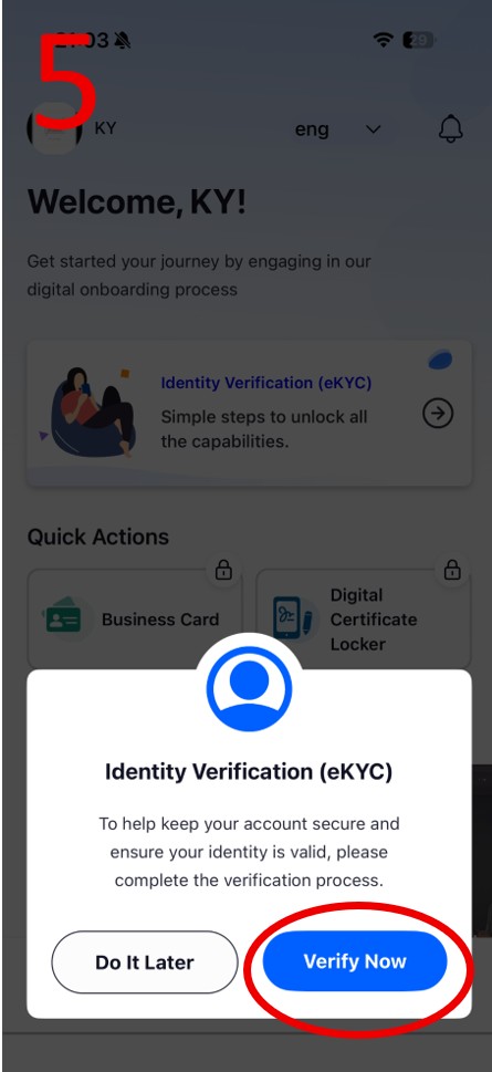 5. Identity Verification (eKYC)画面で「Verify Now」を選択