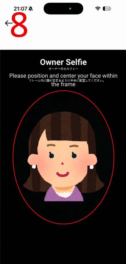 8. パスポート撮影後、セルフィー(自撮り)撮影