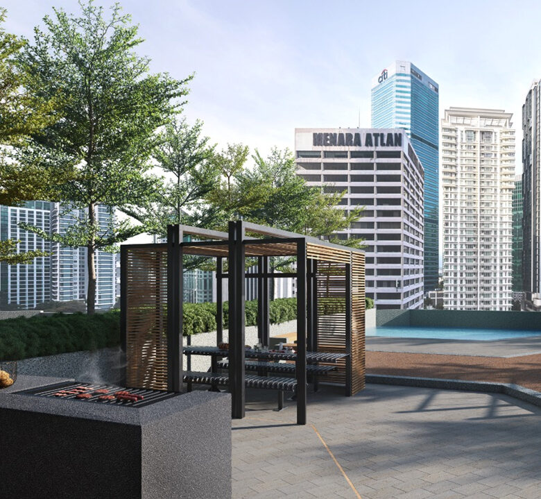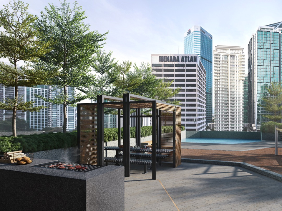 ゴールデントライアングル地区に位置し、Suria KLCC、Pavilion Kuala Lumpur、Avenue K など世界的ショッピングモールへ徒歩圏内です。敷地内には「The Boulevard」と呼ばれる2階建て商業施設も併設され、飲食・ライフスタイル店舗が入居予定です。