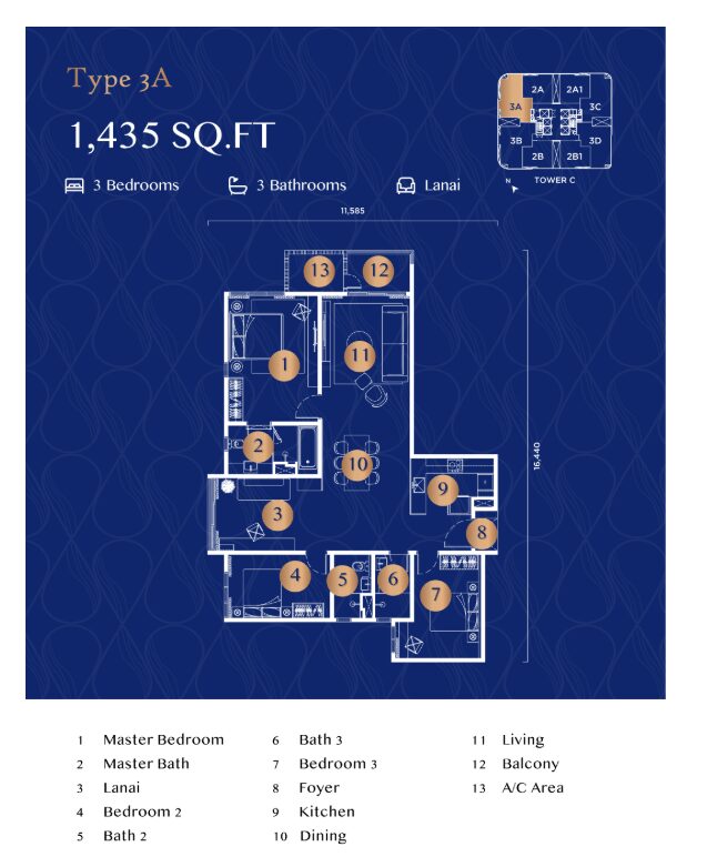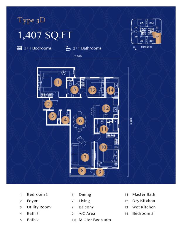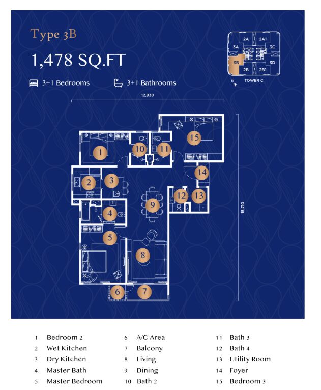 最大 3+1ベッドルーム までのゆとりある間取りを備え、さまざまなライフスタイルに対応した、快適で洗練された居住空間が魅力です。