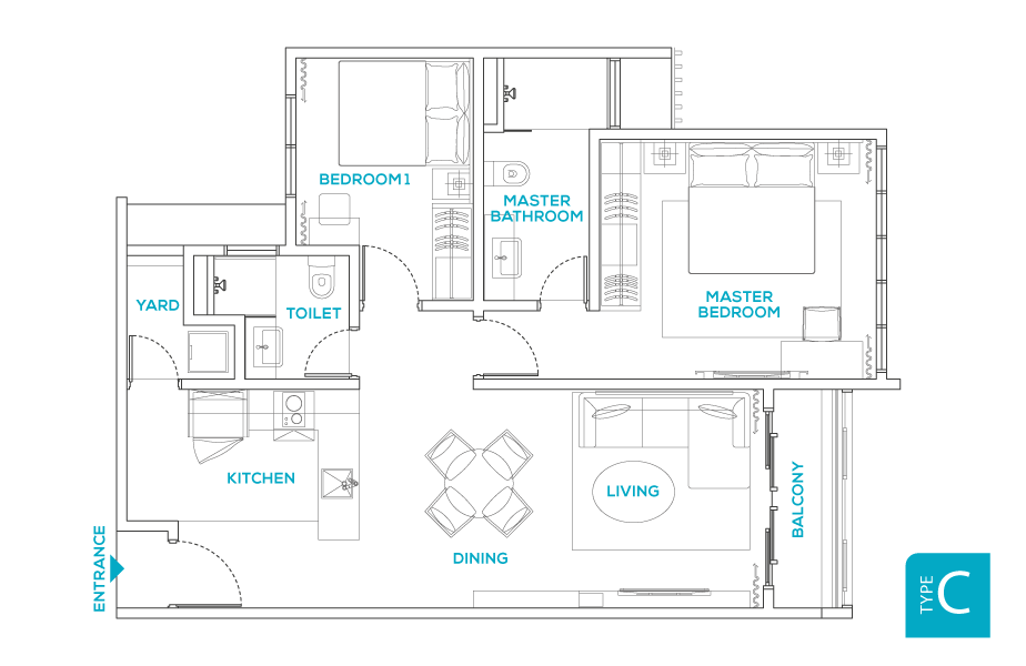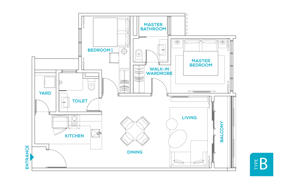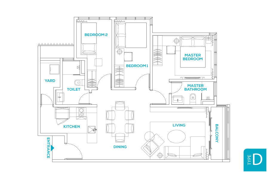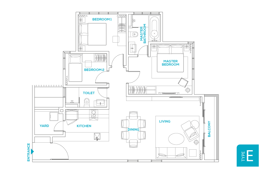 1ベッドルーム、2ベッドルーム、3ベッドルームの3種類の実用的かつ芸術的なレイアウトから、ライフスタイルに合わせて選択できます。
