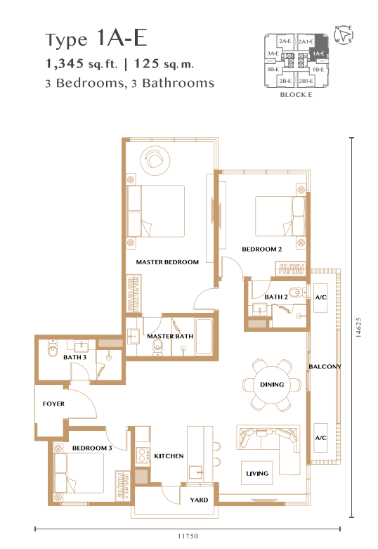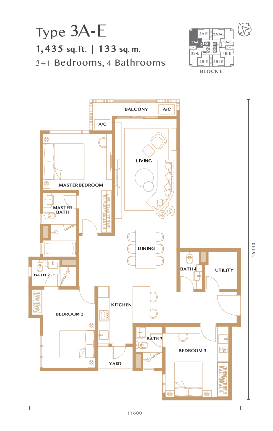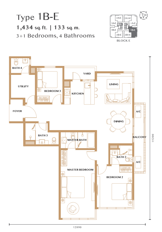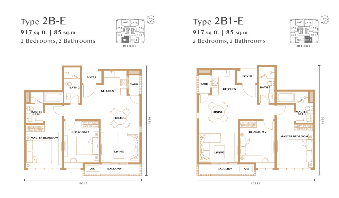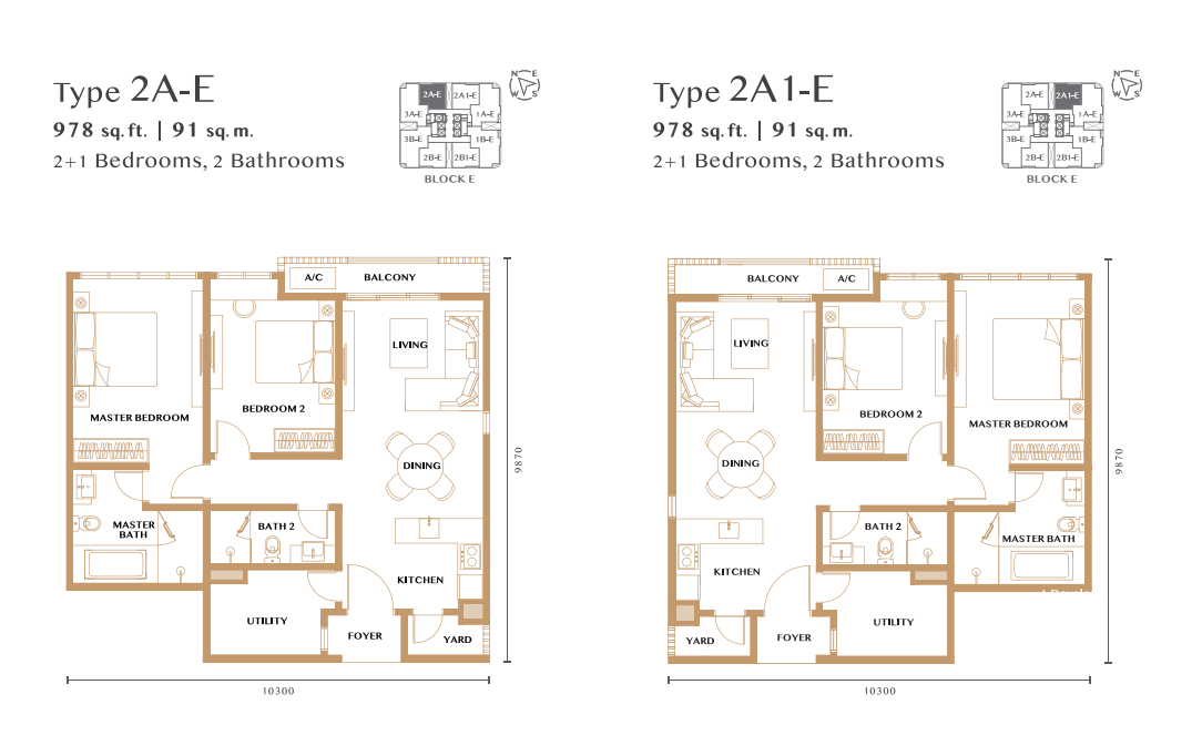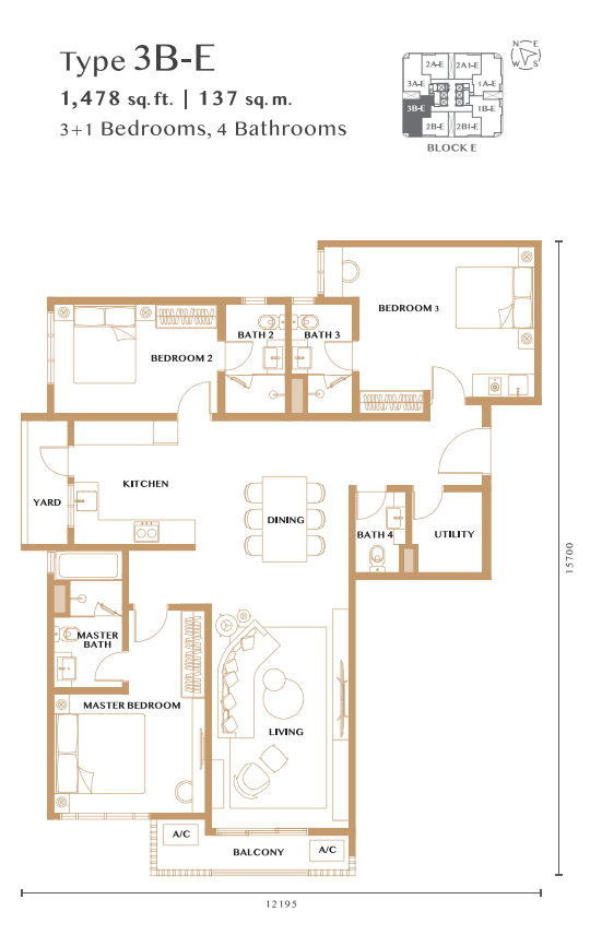 • ユニットタイプ:2〜4ベッドルーム、917〜1,478平方フィート