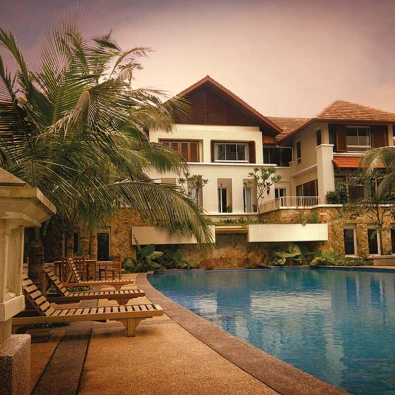 デサ・ダマンサラは、1棟の高層タワーと9棟の低層建物で構成されており、全体で114戸の住宅ユニットを備えています。トロピカル・リゾートをコンセプトとした設計が特徴で、開発は2期に分かれて行われました。第1期は約20年以上前に完成し、第2期は約7年前に完成しています。敷地内には豊かな緑地と、各棟をつなぐ遊歩道が整備されており、滝付きのユニークなプール、テニスコート、ジム、屋上のレジャーガーデンなど、充実した共用施設が魅力です。
