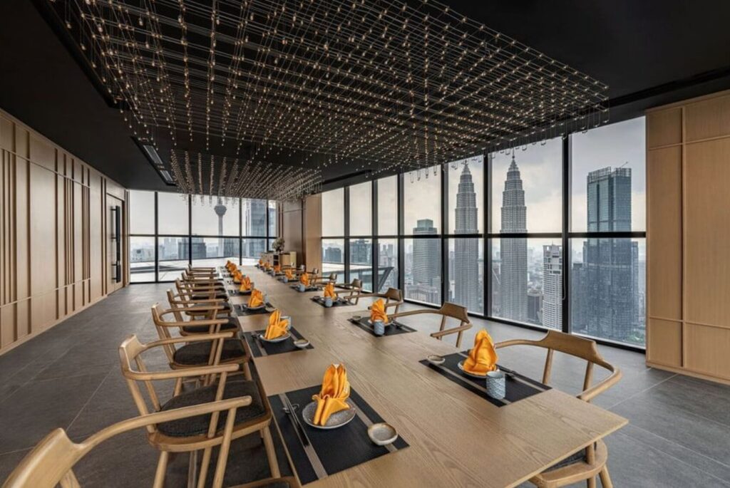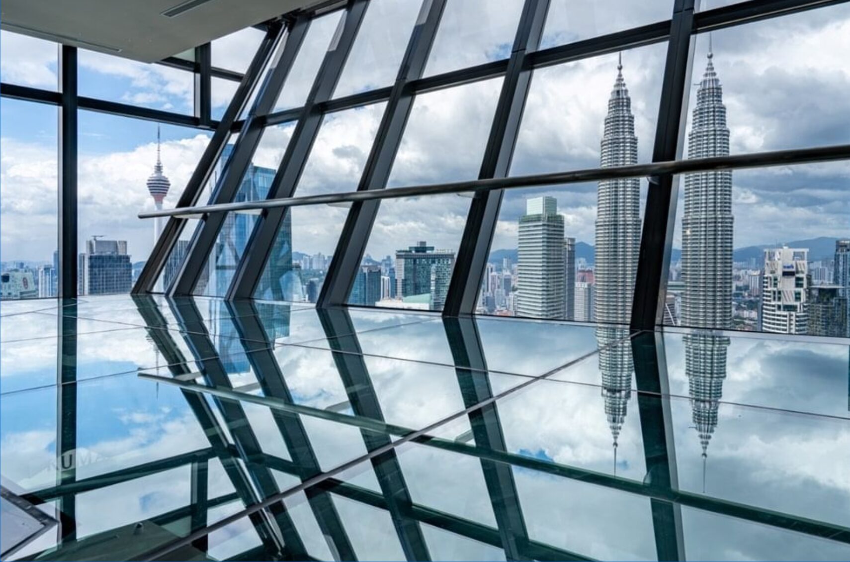 窓の外に広がるのは、ペトロナスツインタワー、KLタワー、Merdeka 118をはじめとする、世界的に有名なランドマークが織りなすクアラルンプールの壮大な都市景観。
