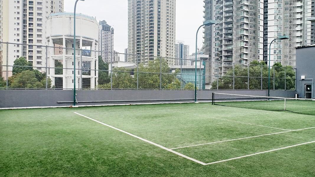 館内には最新設備が充実しており、50メートルのラッププール上にガラス張りで設置された「フローティングジム」が大きな特徴です。そのほか、プライベートラウンジや子ども用プールを備えたレクリエーションデッキもあります。さらに、テニスコート、子ども用プレイグラウンド、バーベキューデッキ、多目的ホールも完備されています。