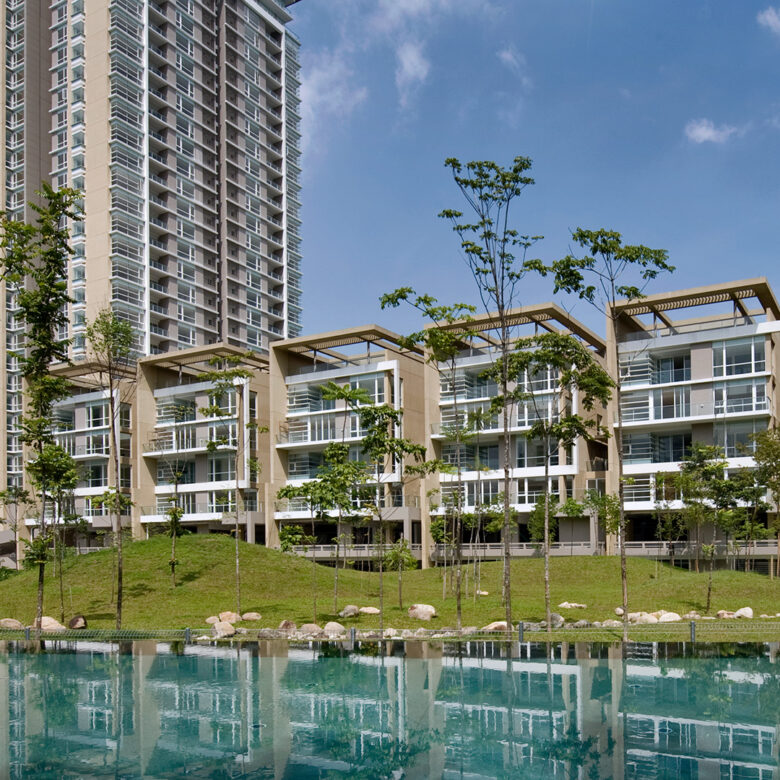 One Menerung は、1970〜80年代に建てられた土地付き住宅(バンガローや大型の二階建てリンクハウス)に囲まれており、ほぼS字型の建物はそれらの中に美しく調和しています。この目立つ建物は、多くの投資家や購入者から好評を得ており、数多くの高評価レビューが寄せられています。