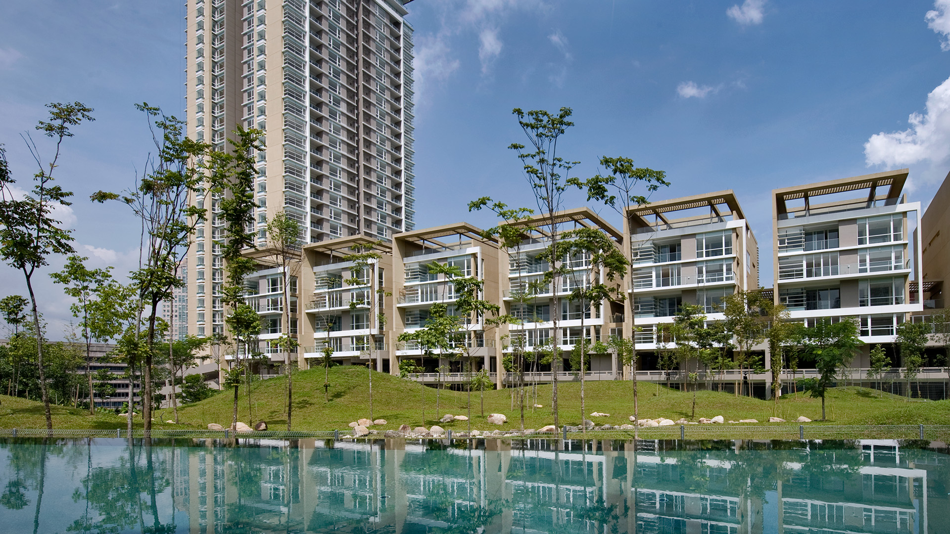 設備面でも、スイミングプール、サウナ、サンデッキ、ファンクションルーム、ジム、ダンススタジオ、テニスコート、スカッシュコート、バーベキューエリア、子ども用遊び場などがあり、ほとんどが1階に配置されています。