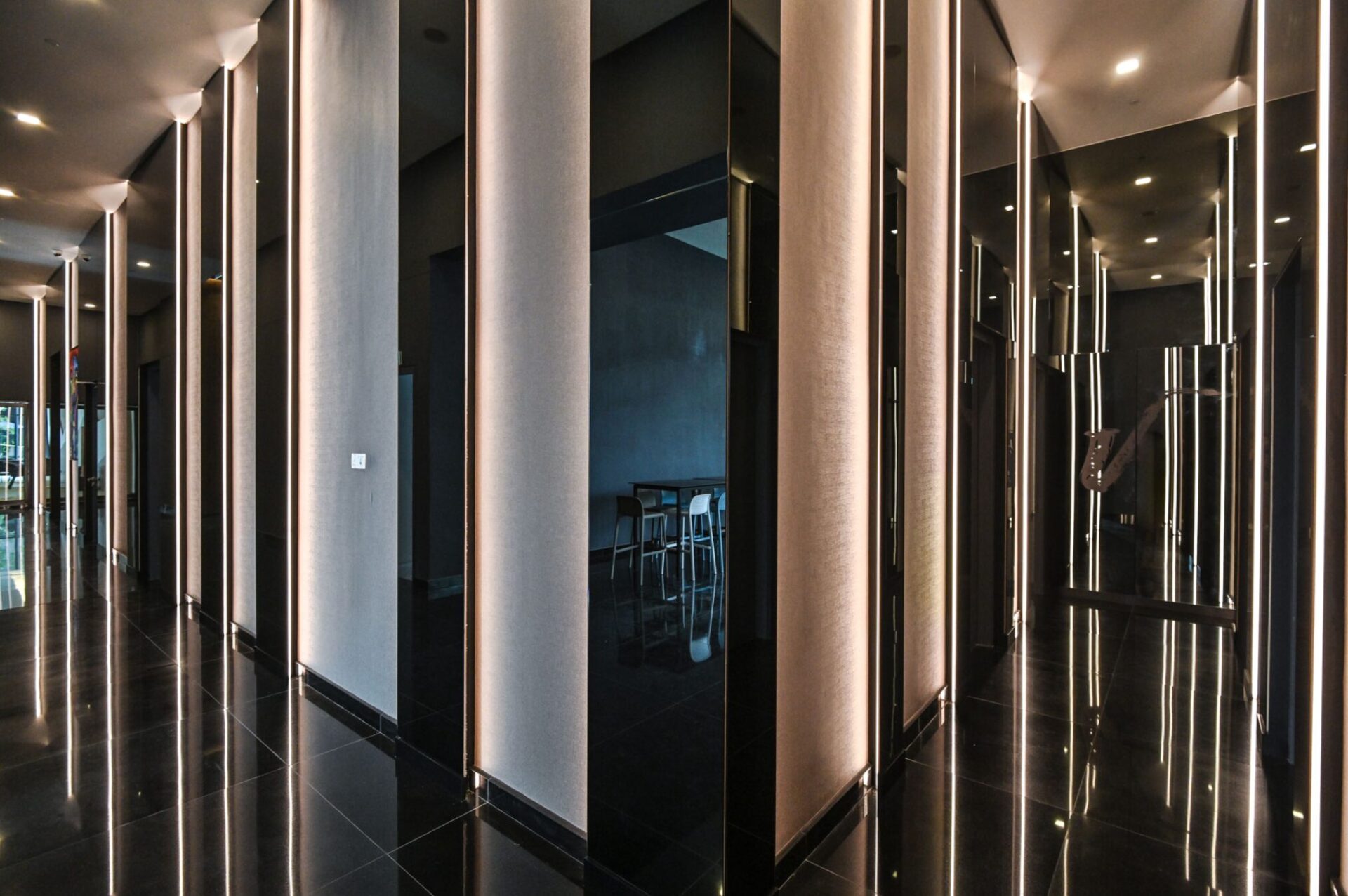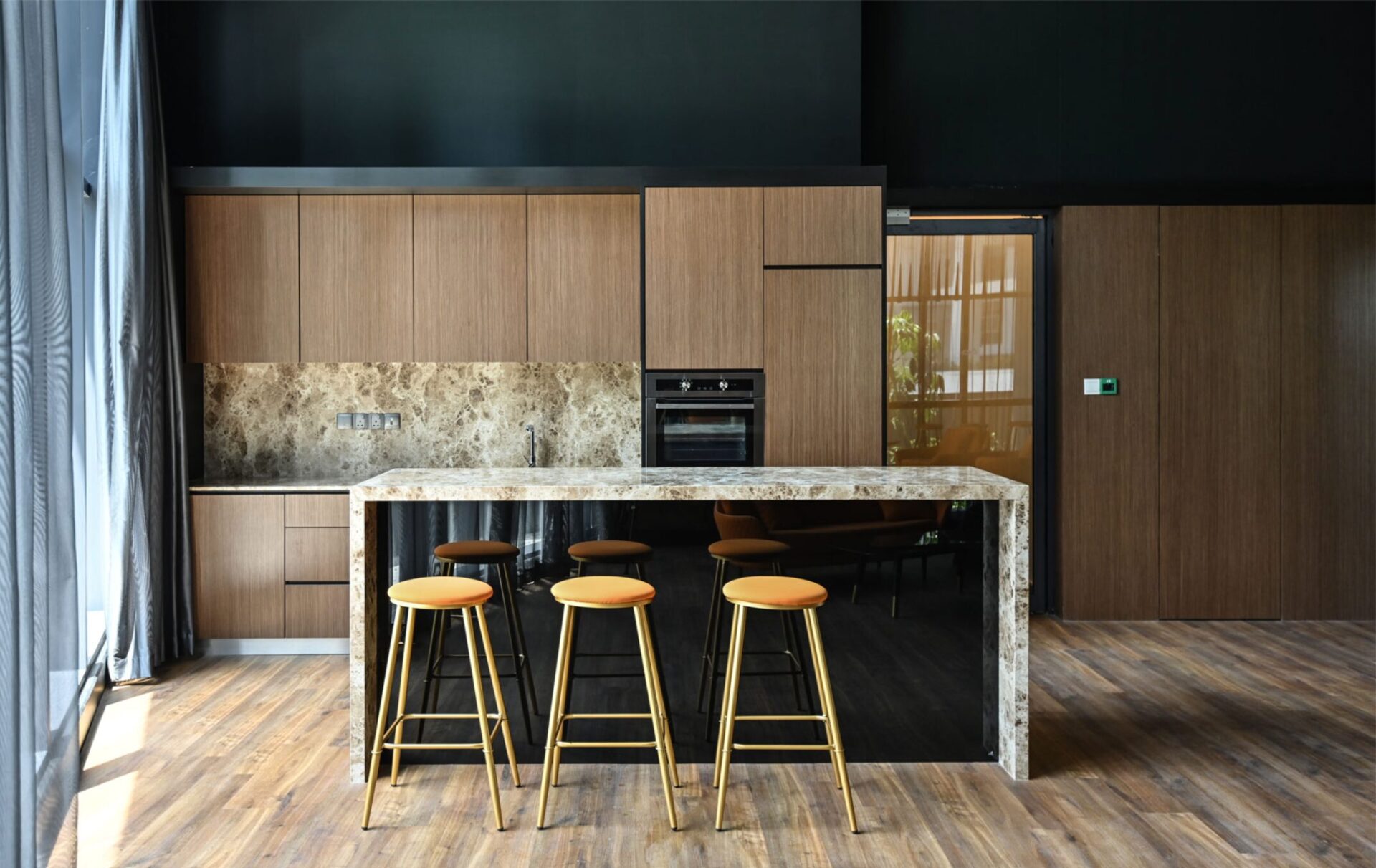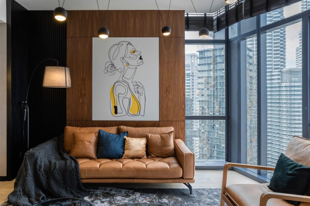 半家具付き販売(内装はWホテルから着想、ウッドやメタル素材を多用)