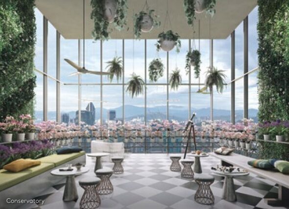コンザバトリー(Conservatory)は、緑豊かなオアシスとして設計されており、仕事や都会の喧騒から離れて心を整える空間です。